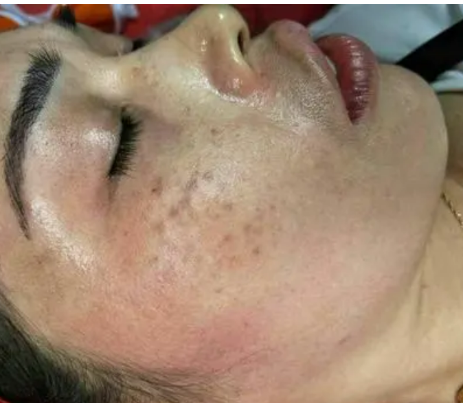 真皮斑的产生一般情况下使用对皮肤有害的祛斑产品,含如铅汞、氢醌、高浓度果酸等产品,及以进行光子嫩肤、激光、采光等之后,使得肤皮会受到很大的伤害。